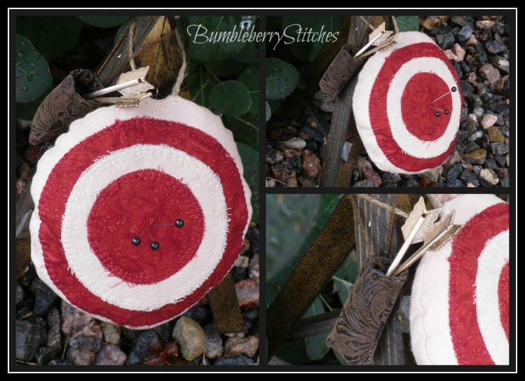1. How cute is that to have the arrows to go with your target! It worked out perfectly with the stand. You and hubby were right on target with this pincushion.