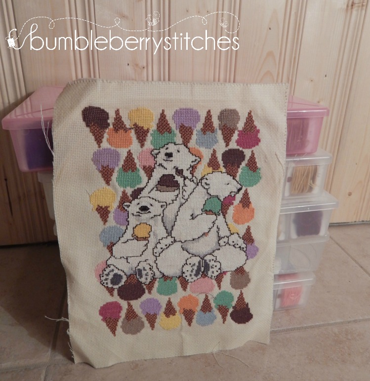 I love the polar bears, do you know the name of the pattern for it? My aunt owns an ice cream parlor/soda shop that that motif would fit in perfectly! And I totally sympathize with the desire to stay home and work, I feel ya. Thank you for sharing, you are definitely a Super Stitcher!