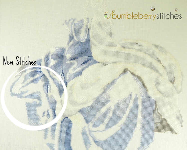 You have made a lot of progress! I think it’s harder stitching when there isn’t a lot of colour variation.