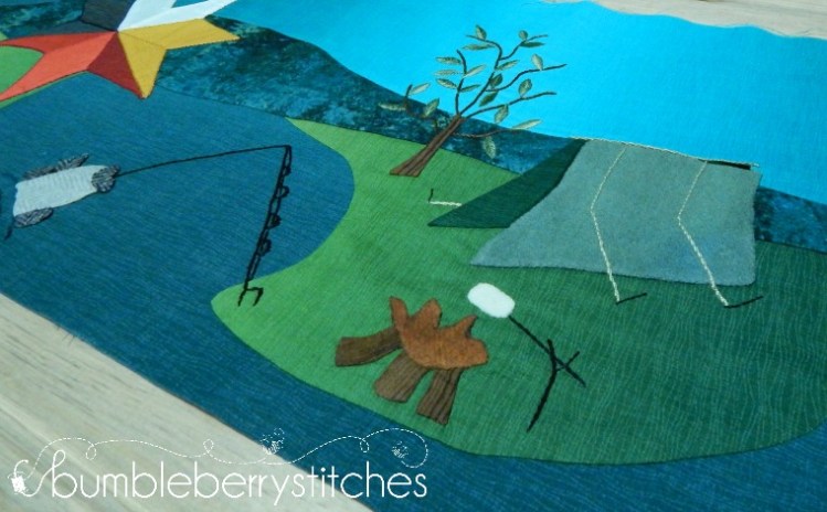The northeastern corner of Oklahoma can be a surprise to those who have never traveled through. It’s a very beautiful area filled with small mountains (yes, us Okies call them mountains :)) lakes and lots of trees. Fishing and camping is how a lot of Okies (and travelers) spend their summers. So, I showed that in my row. But there is so much more to Oklahoma. I couldn’t put it all in my row so I focused on the things that were special to me growing up.