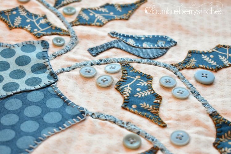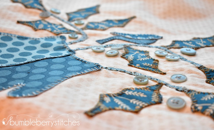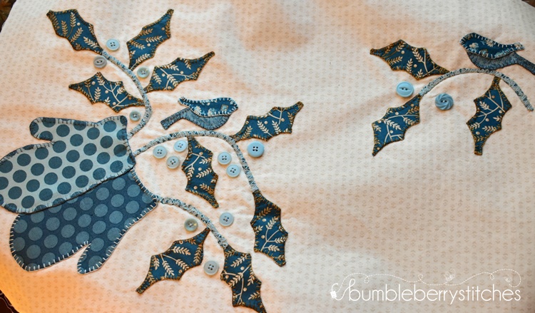 Instead of the appliqued berries I used some old blue buttons that I had in my vintage button stash.