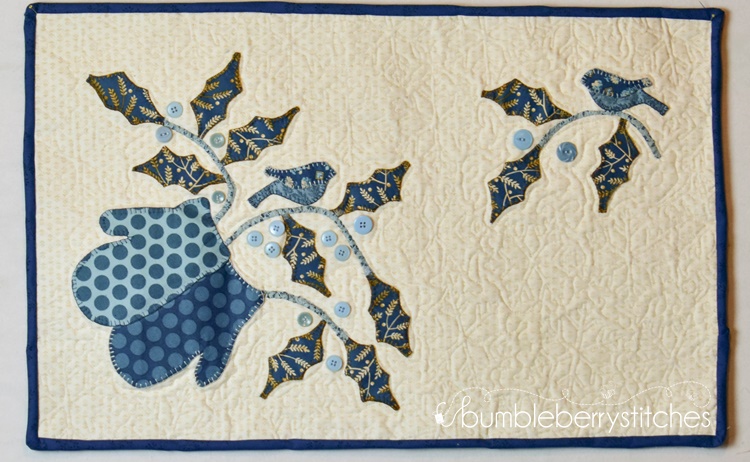 Awww, I love this wall hanging and the addition of the buttons is a win for sure. Stitch regulators take a little while to get used to, but it will come and you will love it I’m sure. Thanks for joining the Winter Blues Blog Hop!