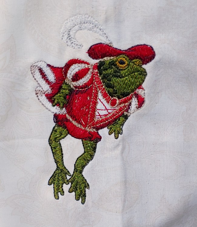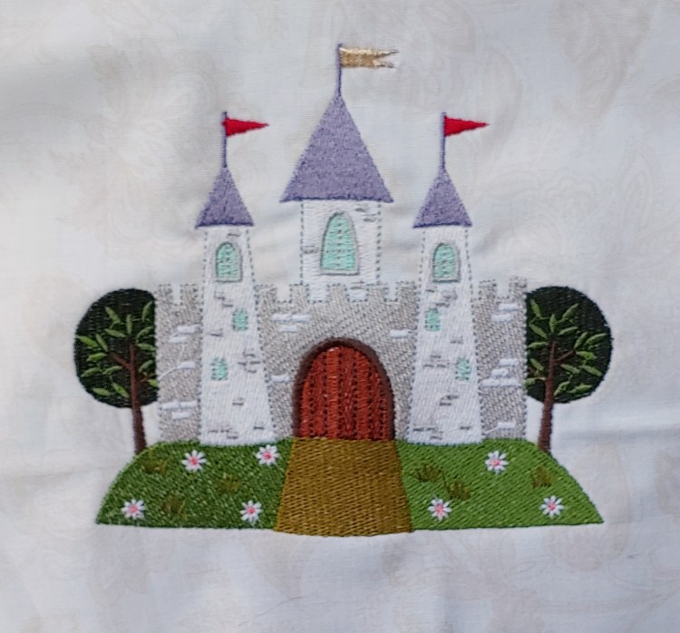 I changed a few of the colors so that the Frog Prince would work with the Castle and others. It saved on threads too. These designs can take quite a few threads and the cost does add up.