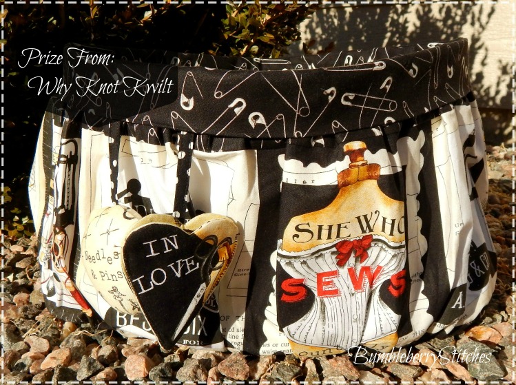 When Wendy from Why Knot Kwilt emailed to tell me that I had won her drawing for the She Who Sews bag, I was so excited. I just love this fabric line Handmaids.